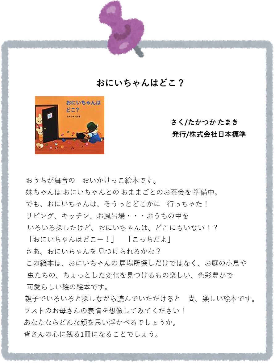 この他にもあたらしい絵本がはいっていますので、見に来てくださいね!(^^)!