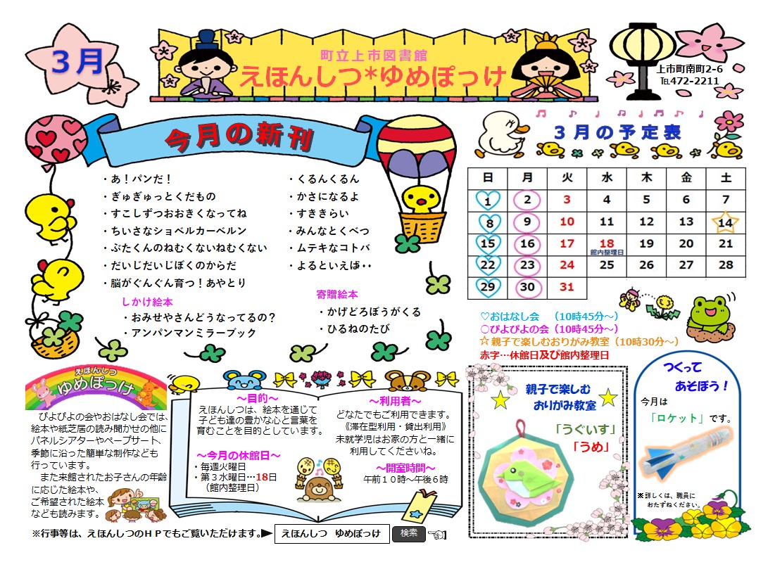 町立上市図書館 えほんしつ*ゆめぽっけ     ← えほんしつ   とっぷぺーじ