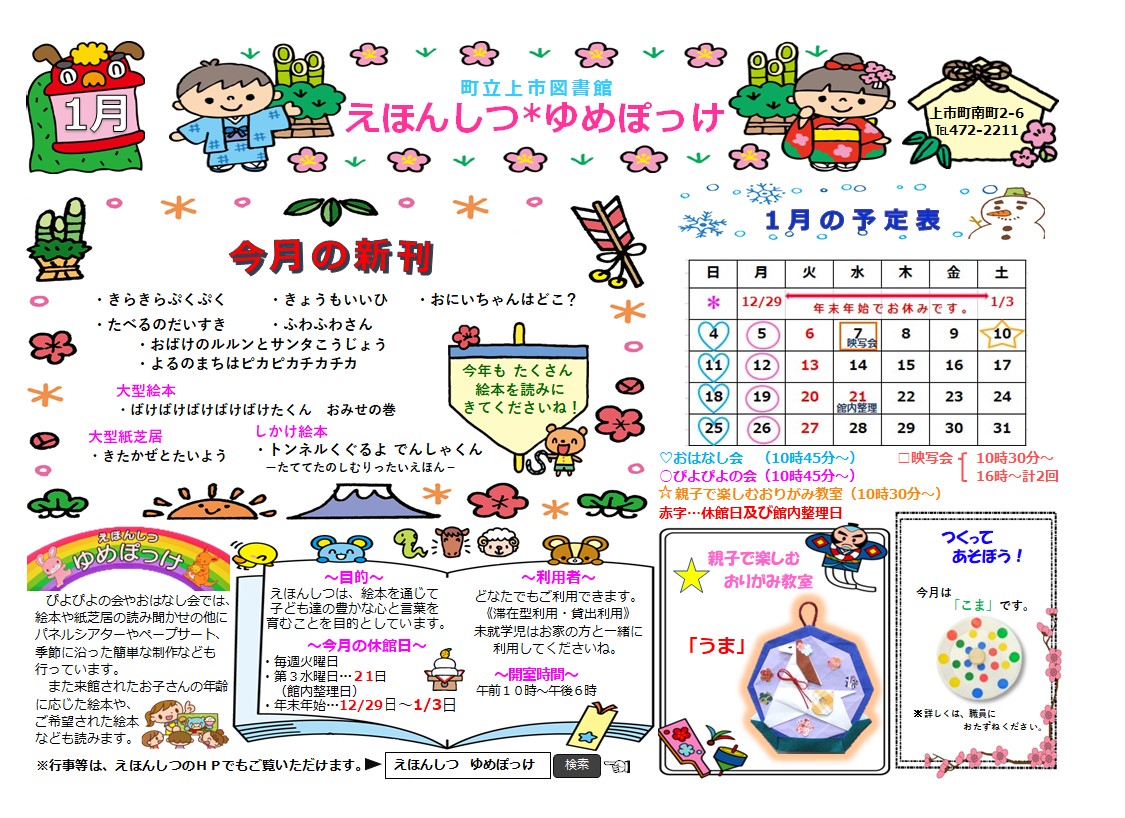 町立上市図書館 えほんしつ*ゆめぽっけ              ← えほんしつ   とっぷぺーじ